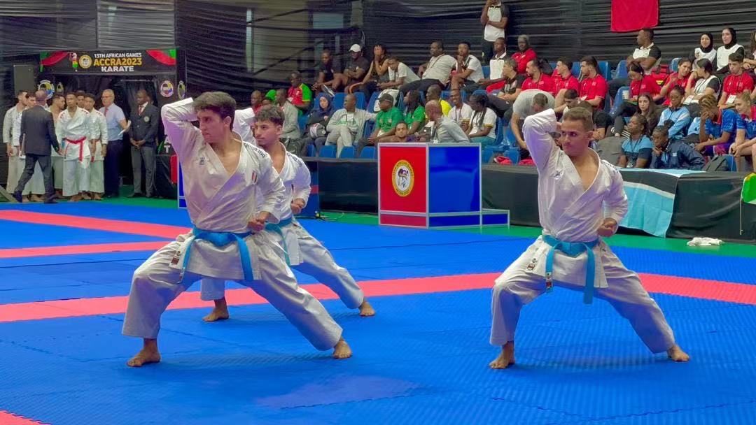 △ 非洲运动会空手道运动员在好博体育体育器材上