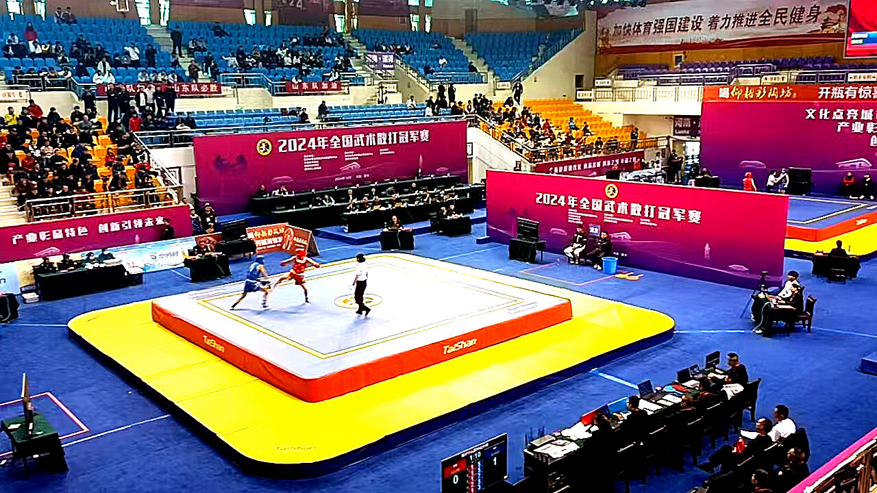 10月24日,全国武术散打冠军赛在河南省漯河体育中心体育馆开打,来自国内顶级40支代表队的近400名武术散打健儿汇聚漯河,给观众带来一场展现武术精髓的盛宴。好博体育体育成为本届赛事场地器材、训练器材供应商与服务商。