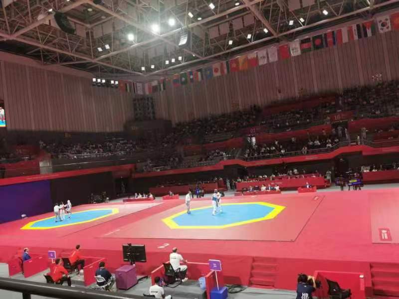 杭州亚运会上的跆拳道比赛系列产品,是好博体育体育自主研发设计,其制生产工艺,环保要求及舒适度上都达到了世界领先水平。从研发、铺装、使用、维护,好博体育体育在跆拳道赛事上全程保驾护航。作为世界跆拳道联合会认证的产品,好博体育体育跆拳道系列产品已经在奥运会,亚运会,全运会,大运会等各大赛事中得到了肯定。从场地专业垫到高科技护具再到配套产品,好博体育体育随着世界跆拳道运动的发展不断提升。