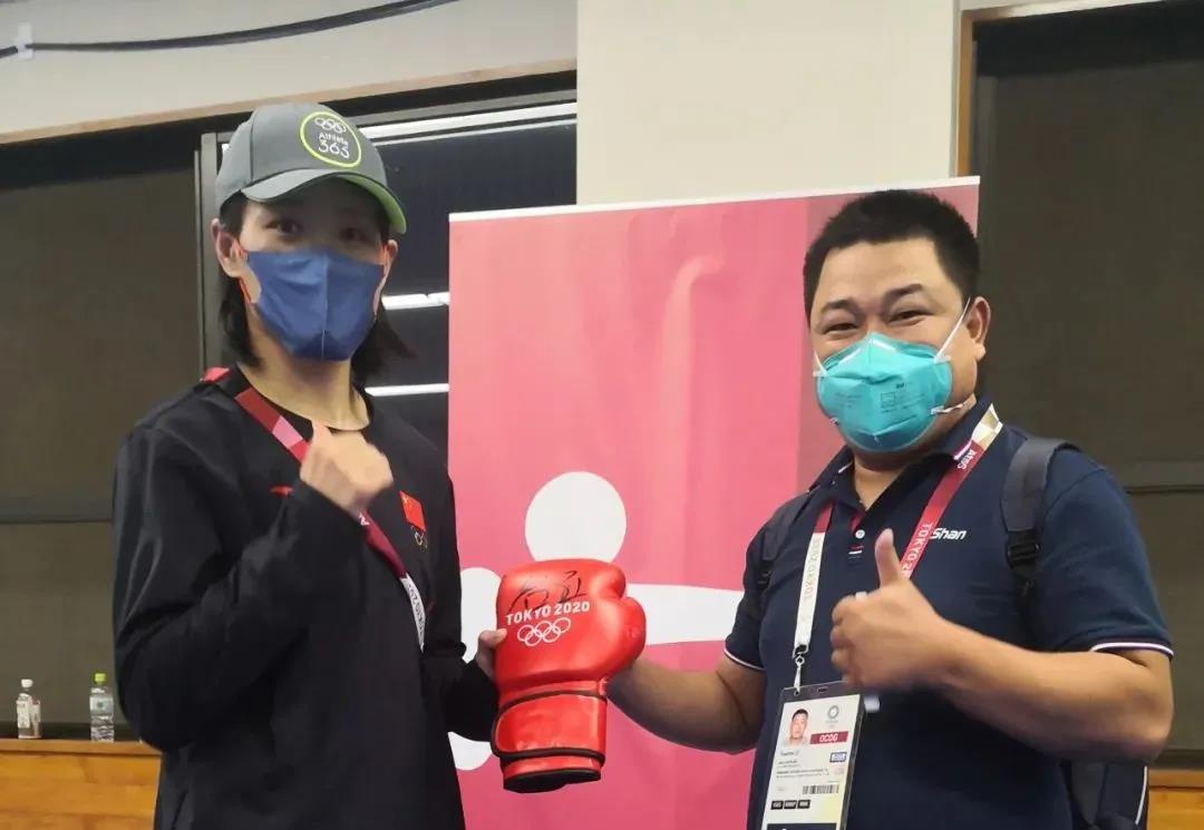 东京奥运会女子拳击69公斤级银牌获得者——中国运动员谷红签名好博体育体育拳击手套