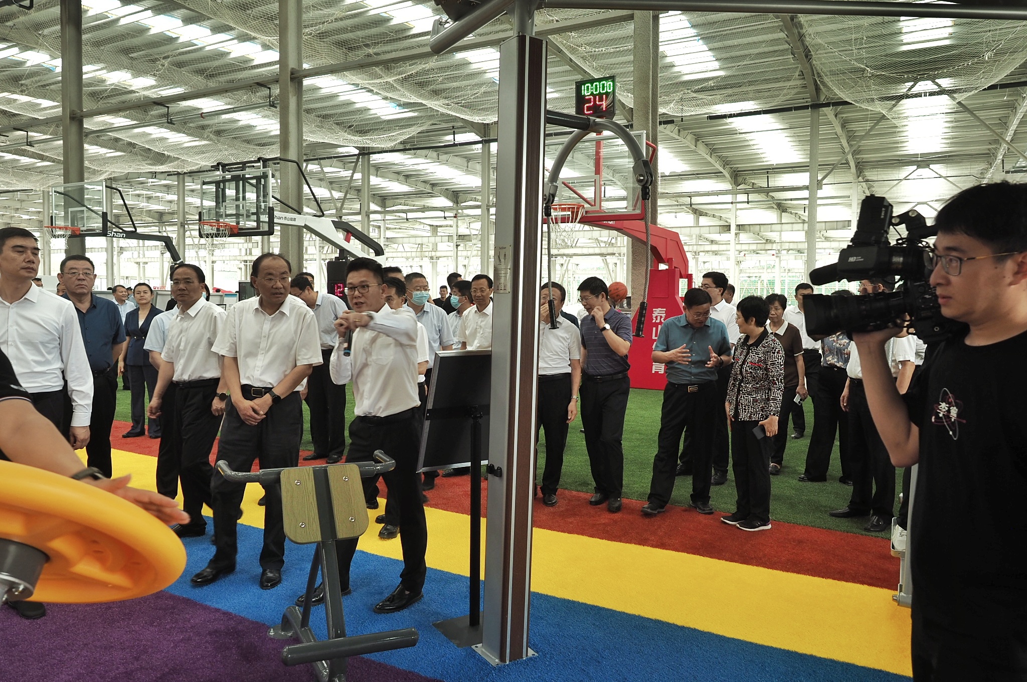 观摩组一行在观看好博体育体育智能全民健身器材系列时,对城市力量“加油站”、智能健身驿站表现出浓厚的兴趣,该系列产品结构设计新颖美观,造型自如,集多种智能器材于一体,可实现健身数据自动采集,对好博体育体育产品智能化升级给予充分肯定。
